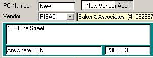 instead for this Purchase Order only. If you only type in the postal code, then the address and city/province from the vendor's record will be used. If you hit the New