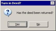reports. Clicking it again will show the message box on the right. If you click Yes, then a new deed number will be assigned and the same three