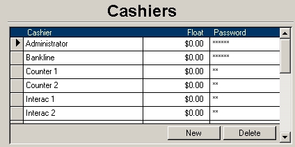 This screen allows you to enter, delete, and edit the cashiers. If there is more than one